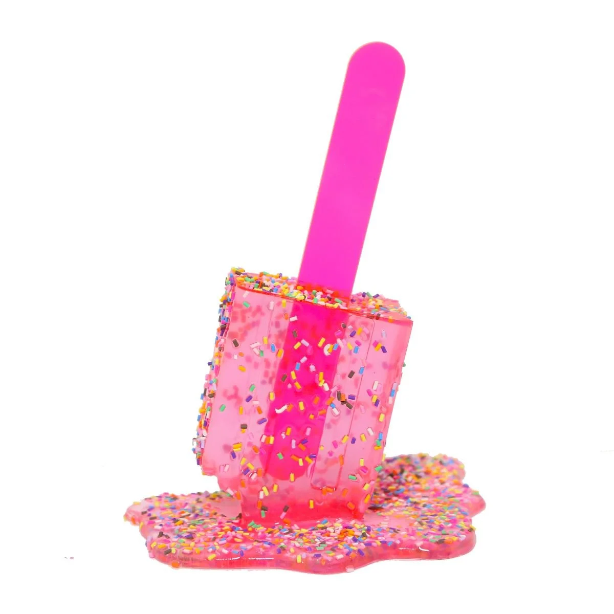 Betsy Enzensberger, Rose Sprinkle Pop, Resin, glitter, ink and wood, 10x6 inches / 25x15 cm