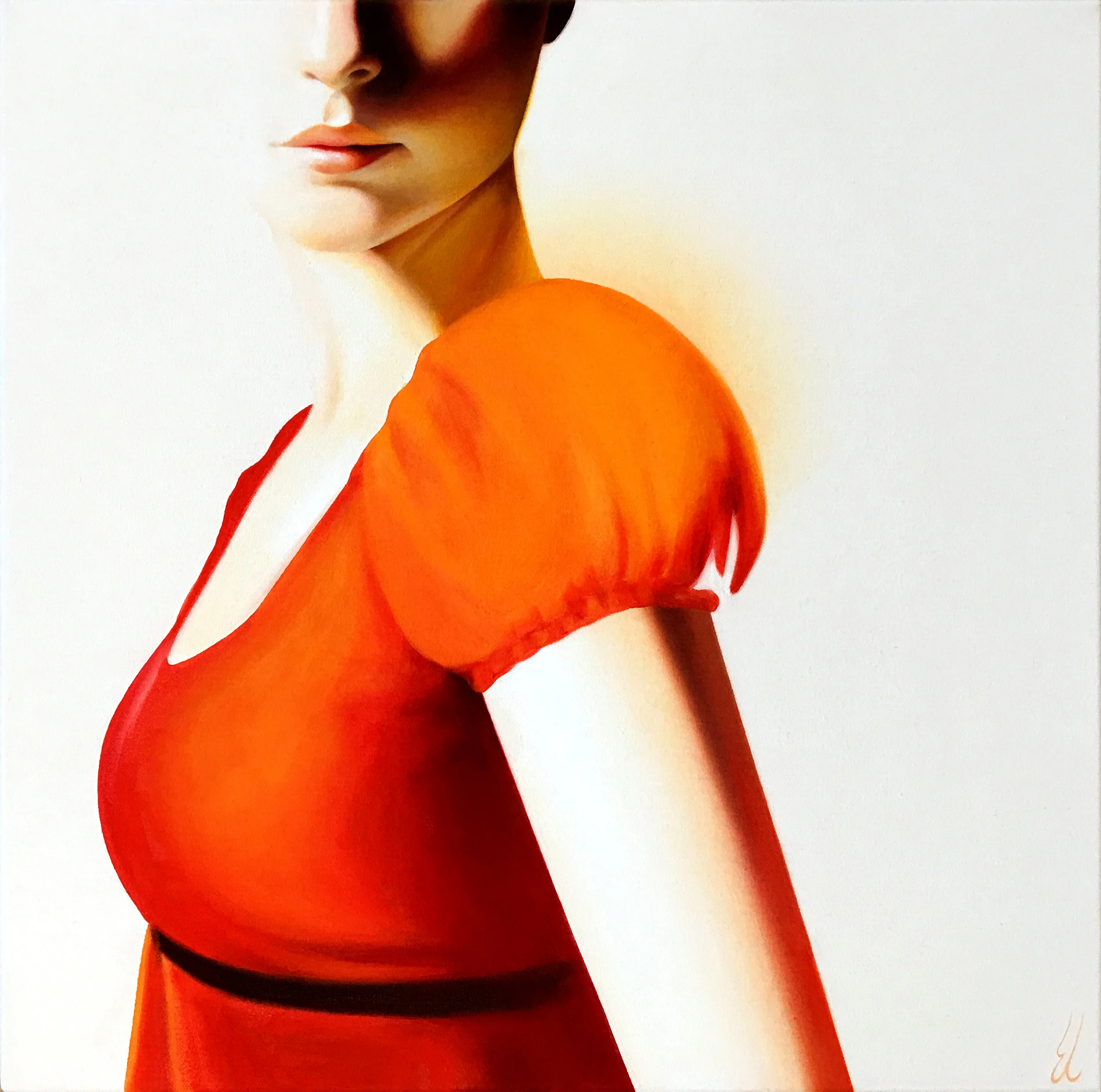 The methods Erin Cone use to achieve this result are very complex. In seeking her motif, she makes sketches of poses, gestures, and details. These then become the basis for photographs (generally of herself, but sometimes of models as well). The final search for composition occurs intuitively. Through experimentation, Erin Cone finds the right combination of individual elements.