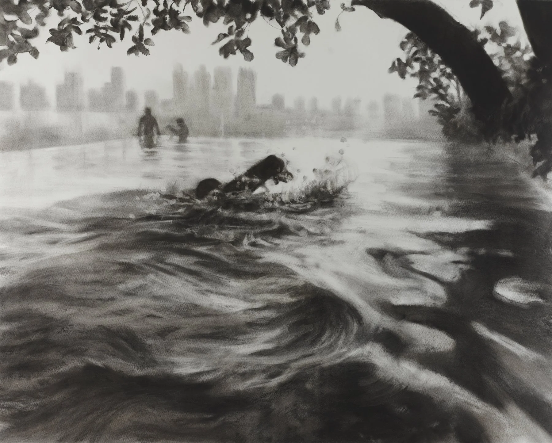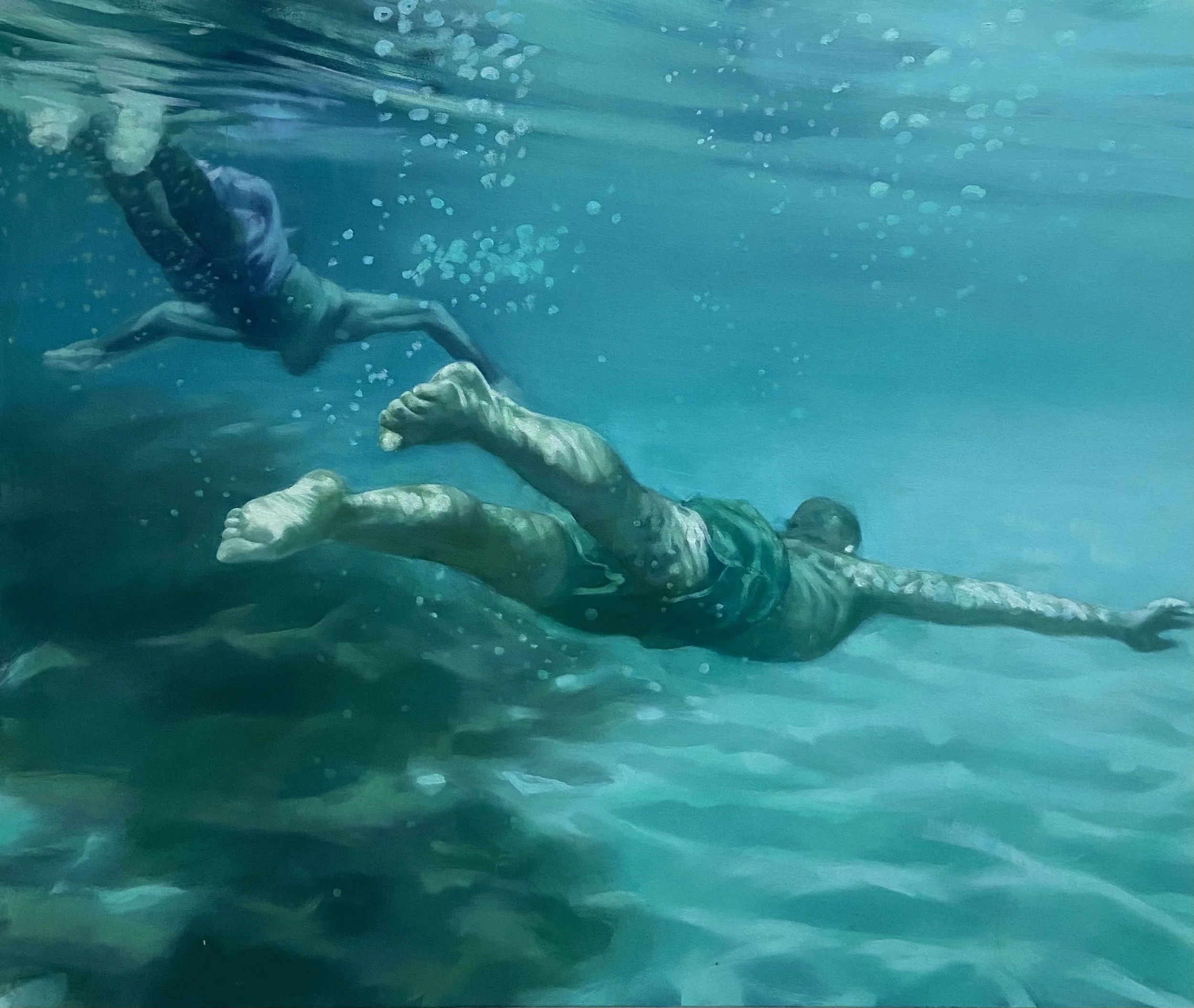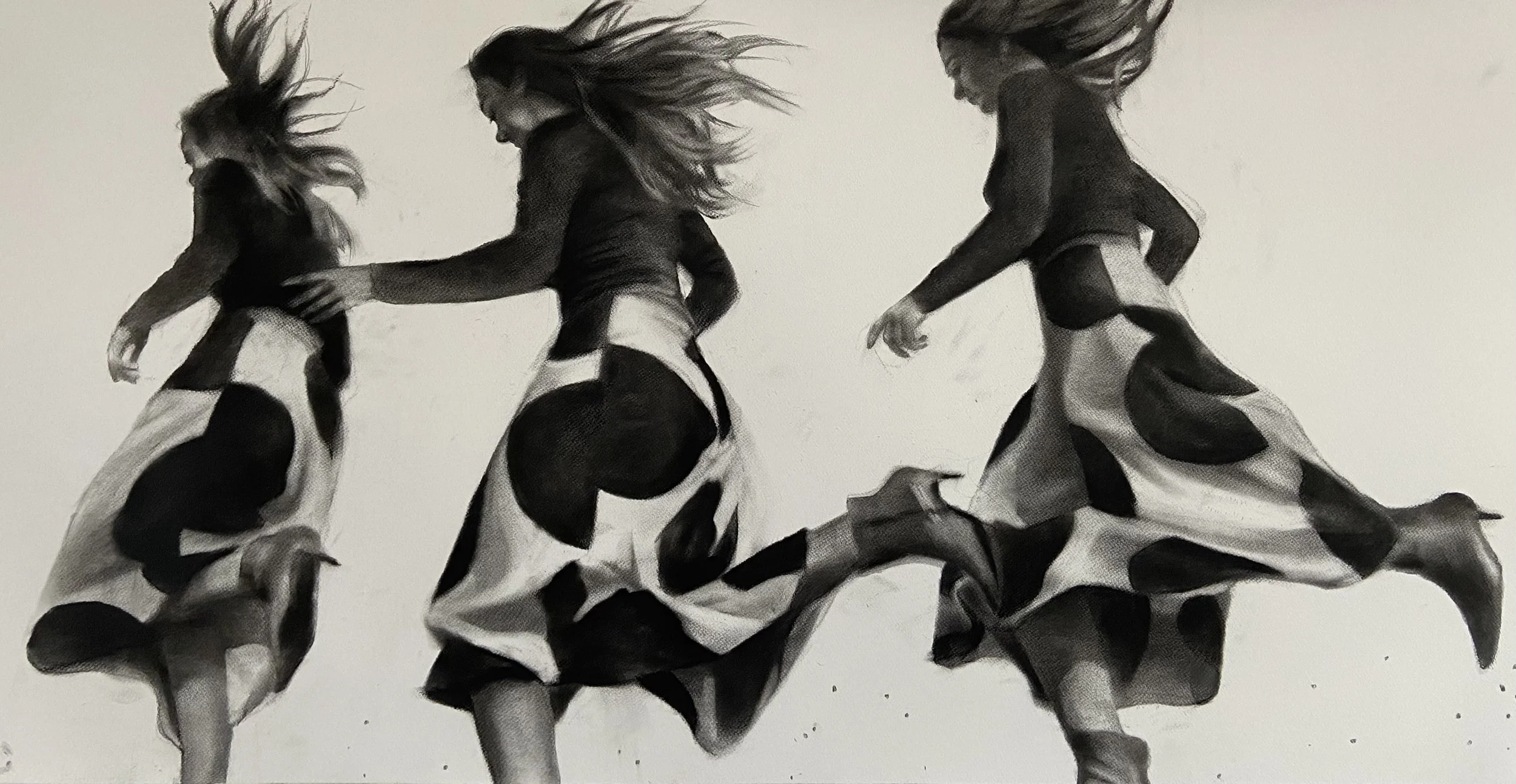 Scottish artist Patsy McArthur explores the grace and power of human movement in her naturalistic drawings and paintings. Her latest works, including small ink studies, charcoal and graphite drawings, and large oil paintings, convey a palpable sense of strength and athleticism, while also evoking a transcendent quality in the depiction of the human form in various states of suspension, from leaping and soaring, to flying and falling. Above all, a feeling of freedom is carried throughout.